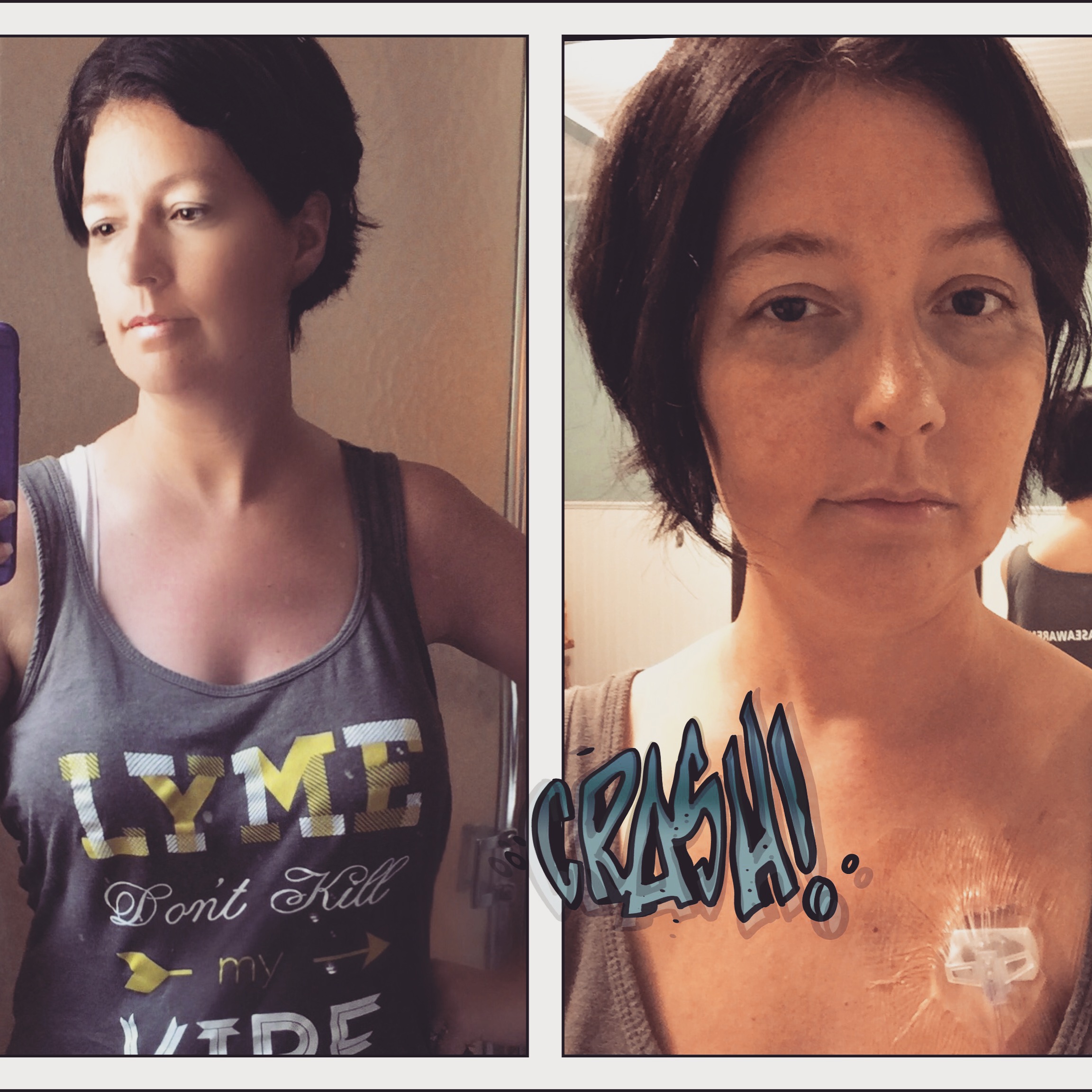 No, I spiraled. I could feel it happening, but I couldn’t stop it. My LLMD was on vacation and out of cell service range. I waited too long for help. By the time I sought it, I was desperate, calling my reliable family doctor, who had orders ready for me at the local emergency room within minutes. Unfortunately, within a few days, I was in surgery, having a port put in my chest, providing constant access to my veins. Thank God for this small miracle because the veins in my arms couldn’t handle anymore abuse. I returned home with IV antibiotics and an oral cocktail, but the relapse was still spiraling. Within days, the pain was too much and I returned. My doctor worked to stabilize my pain, to get me on the other side of this Lyme flare, but the seizures began. Television, reading, anything requiring eye focus, which, dear readers, is why I haven’t written much lately, could create a pseudoseizure. I was transferred to a larger hospital where an MRI and lumbar puncture were conducted to try to determine if Lyme was the only culprit. Again I returned home in pain with a massive headache and with an even more sore back, but I vowed not to return to a hospital.